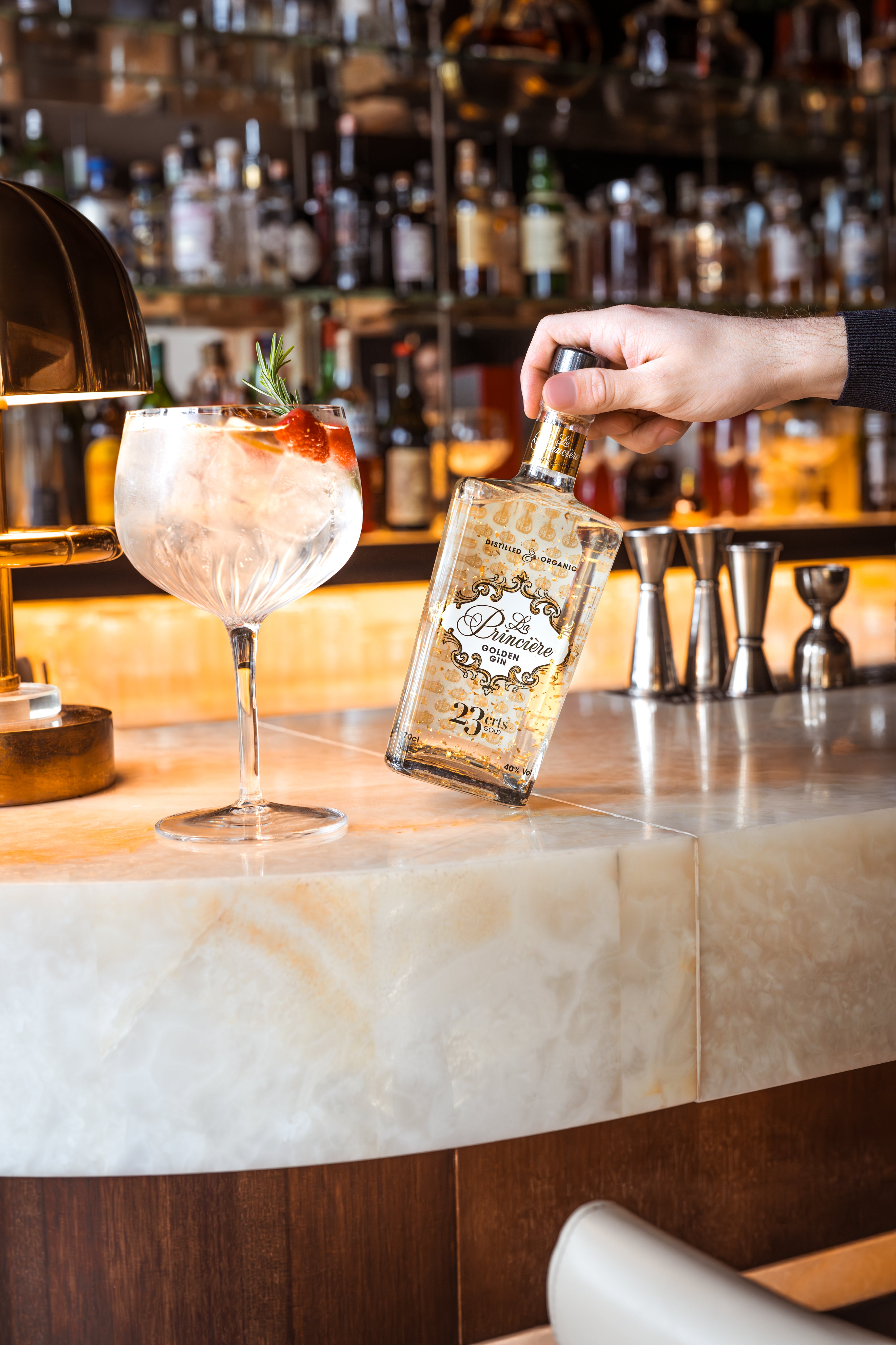 What truly sets La Princière apart are its shimmering 23-carat gold flakes, suspended like liquid gold, adding a touch of pure opulence to every pour.